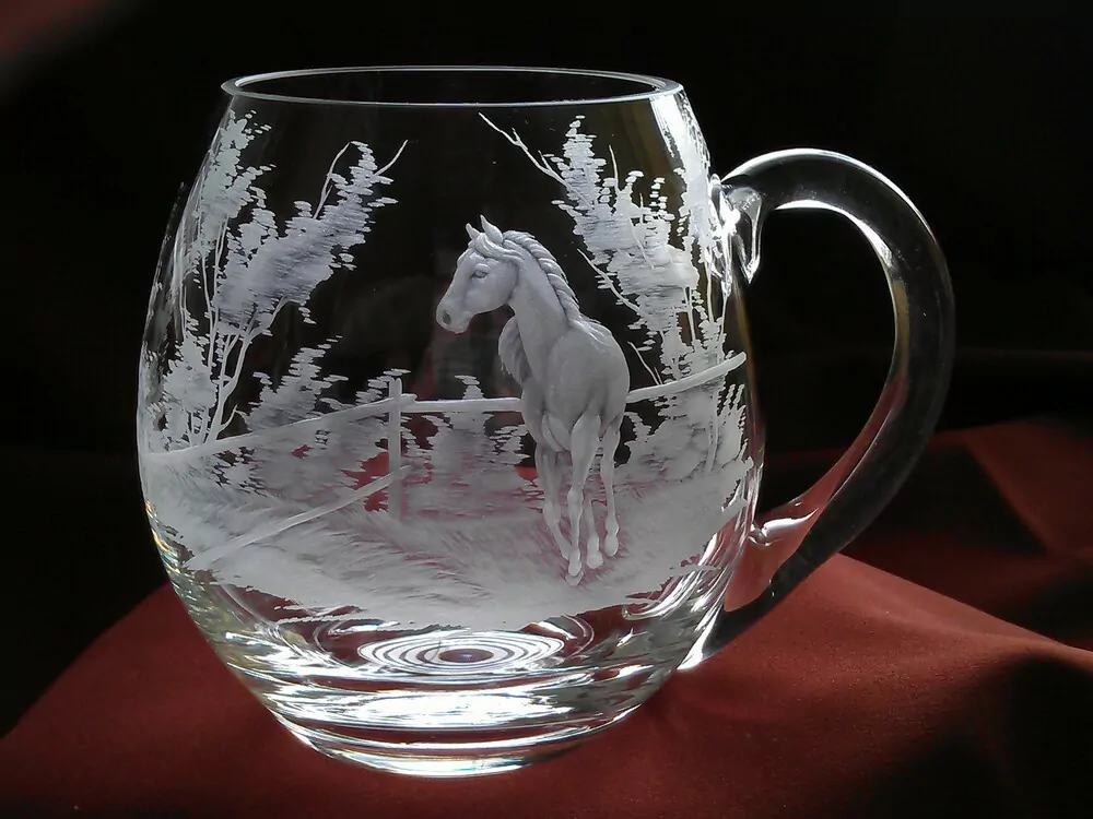 Koně jsou nádherná zvířata a na skle vypadají úchvatně. Jako dárek je to častá volba. Všechny naše motivy koní, ať na sklenicích nebo půllitrech či vázách, vždy udělali radost. A je jedno, jestli brousíme naše koně nebo dle vašich návrhů. Proto často využíváte možnost vybroušení portrétů koní, přímo vašich miláčků.